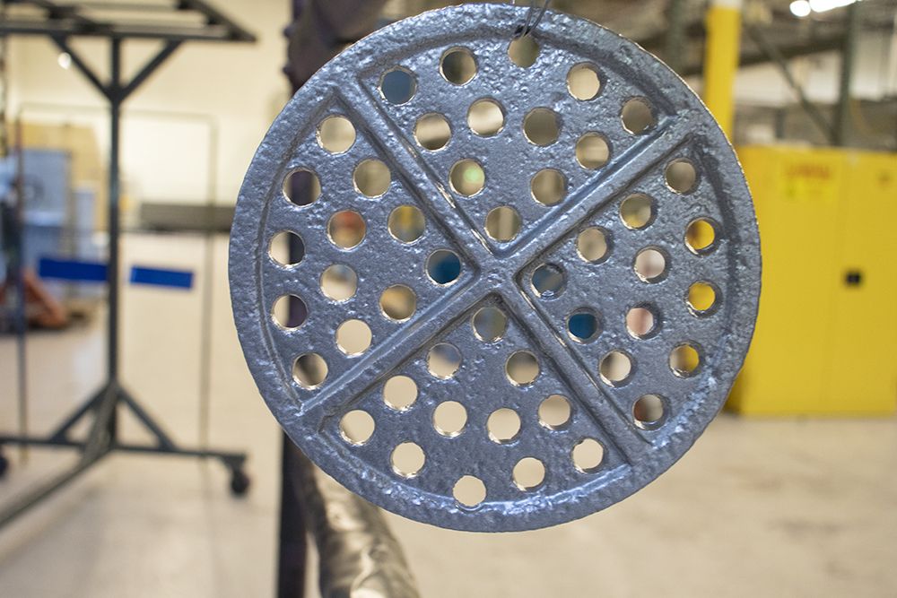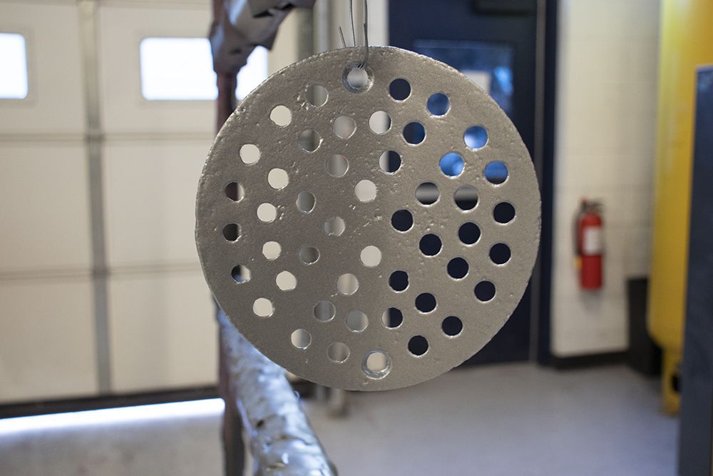 This drain cover has seen a few wet days, and rust was an issue. With blasting and a quick coat of silver it looks brand new! Do you have any projects around your house that could use a face lift?