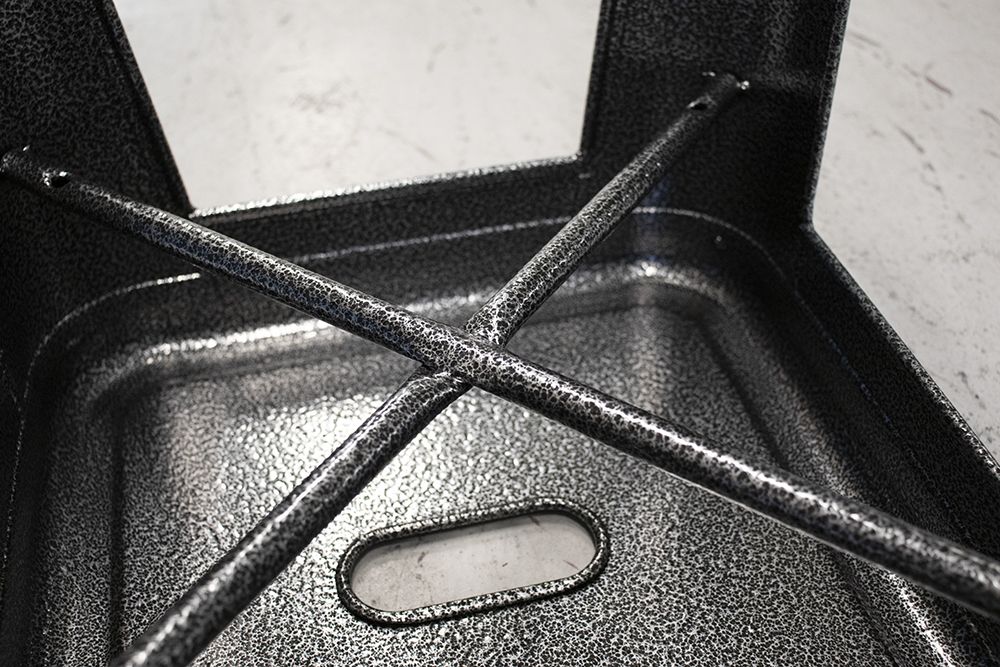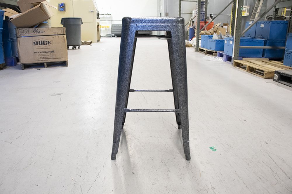 These bar stools started our looking plain and ordinary. With a quick dip in our chemical tank to remove the previous coating and a stop in the blast cabinet, these stools were ready to coat. Top them off with a coat of silver vein and they look like a million dollars!