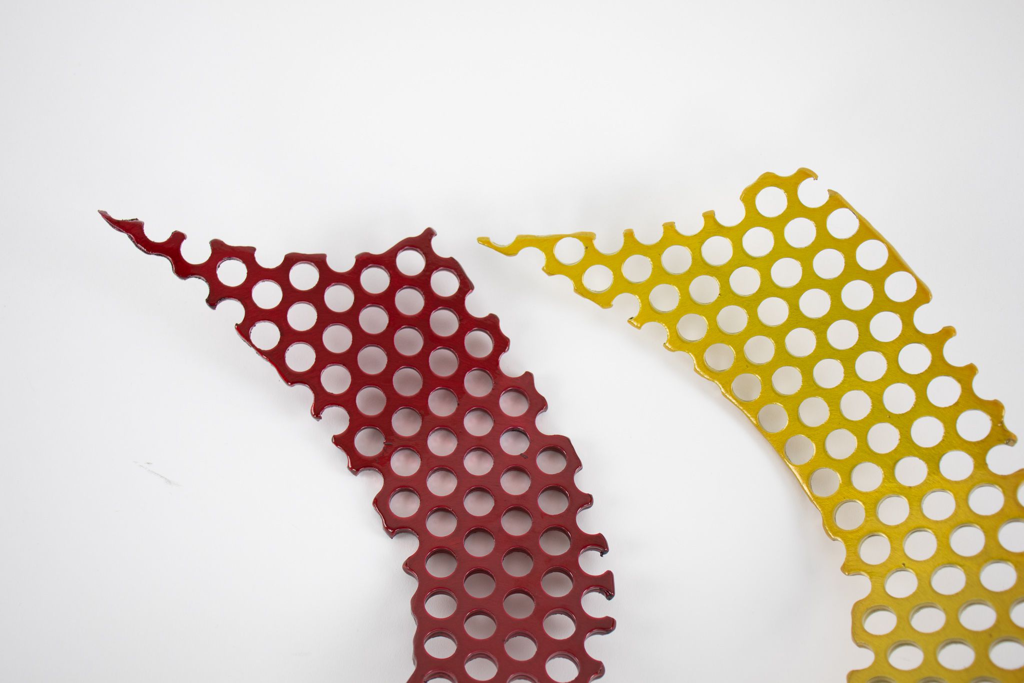 This project was for a local sculptor who was doing a pieces for a private collector. They were wanting the two pieces to contrast each other with Psycho Lemon and Transparent Red. Both of the colors we used were transparent, so the brushed aluminium still showed through.