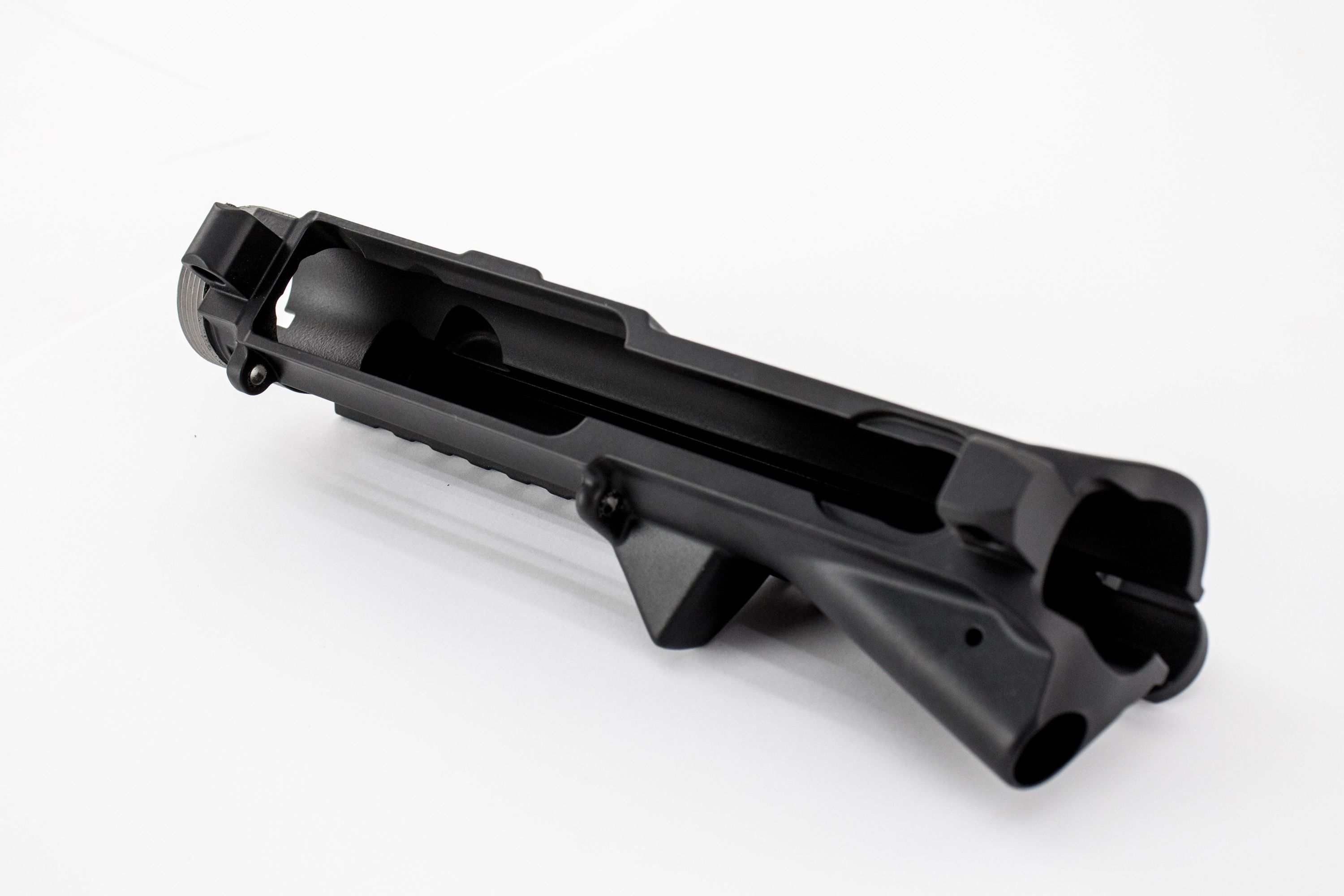 These unfinished upper and lower receivers were an interesting project. There were a lot of areas that needed to be plugged to ensure that everything could be assembled once the coating was complete. The prep was nice and easy, with a quick wash with our iron phosphate solution these pieces were ready to be coated! The low gloss black was exactly what the customer was looking for.